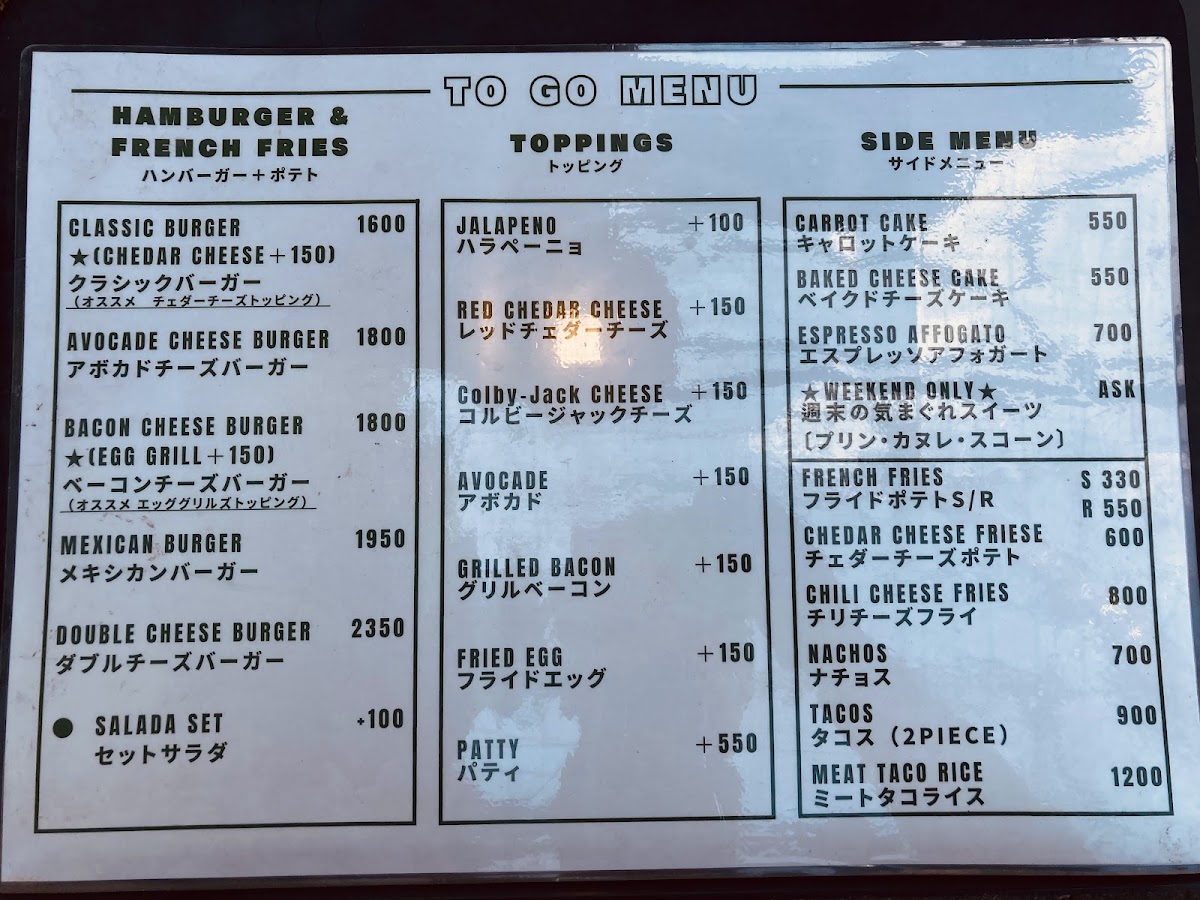 Another must-try is the Mexican Burger (JP¥2,000), which takes your taste buds on an exciting journey with its spicy chili beans, layered generously over a succulent beef patty. Each bite resonates with a perfect blend of heat and flavor, creating a truly unforgettable burger experience. And for those looking for a lighter bite, the Piri Piri Meat Tacos (JP¥900) offer a zesty option filled with seasoned ground meat, cheese, and homemade salsa sauce—ideal for sharing or as a tantalizing snack.